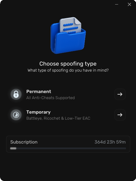 Easy Anti-Cheat, BattlEye, Vanguard, FiveM, Ricochet, and Faceit. Our temporal spoofer has full BattlEye support and some EAC games (Windows 10 only).